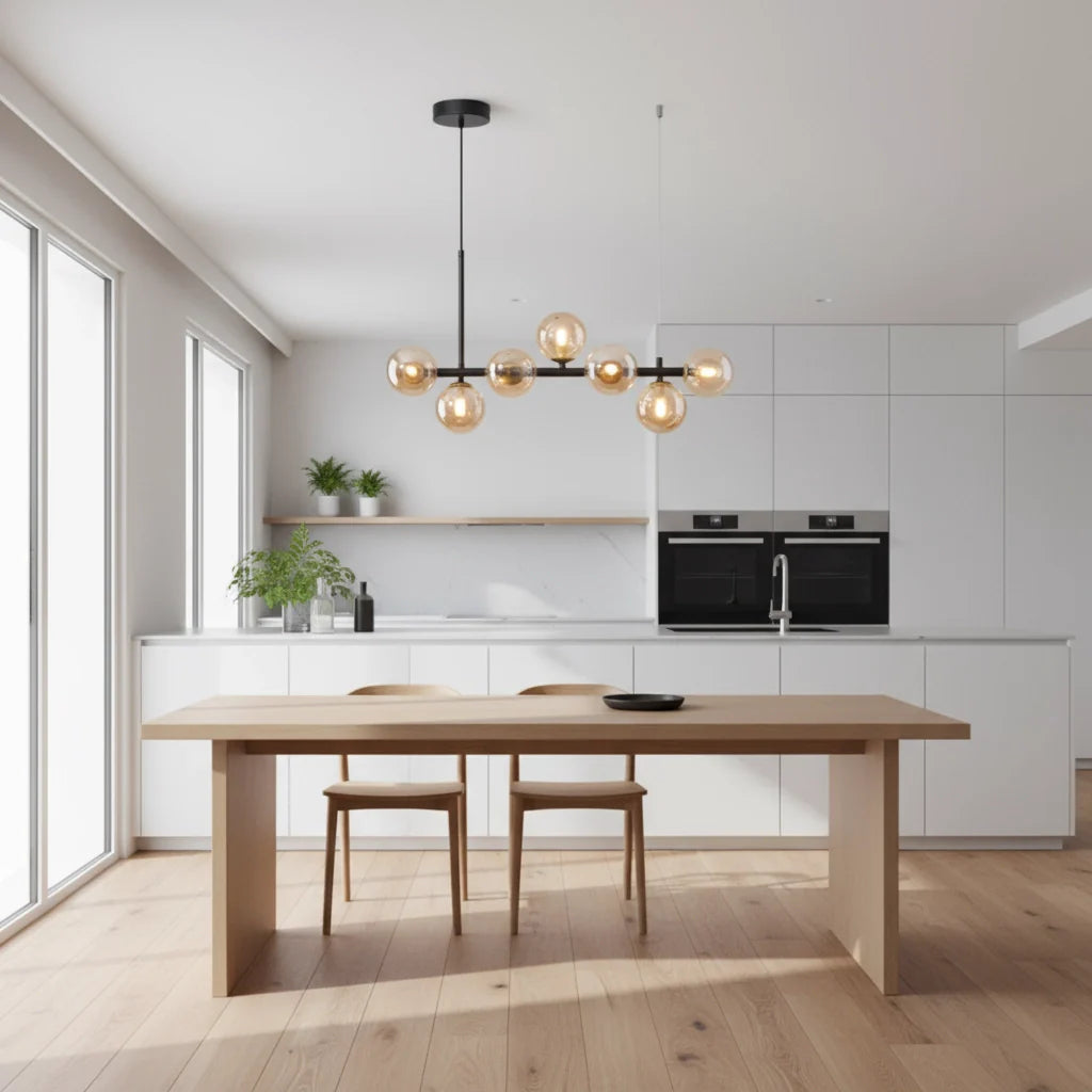 Designer lighting made for islands, dining tables and countertops. Pieces that balance functionality with refined aesthetics.